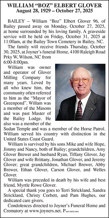 WILLIAM "BOZ" ELBERT GLOVER